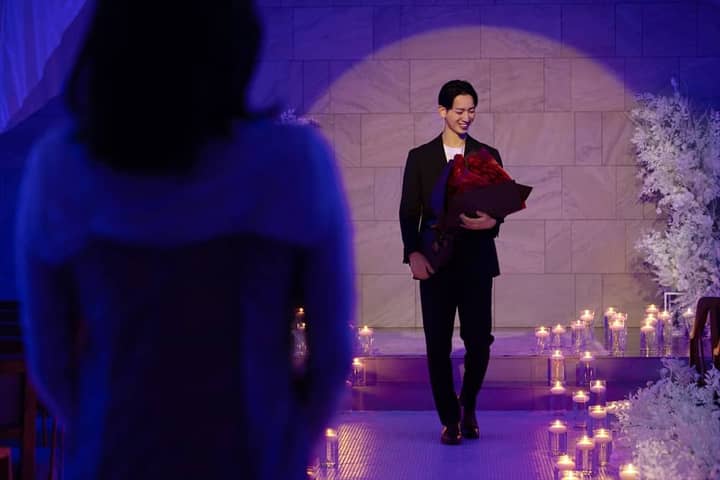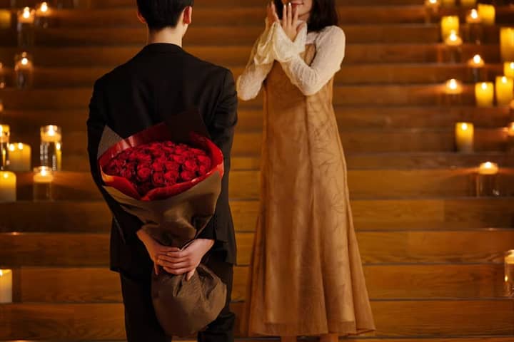 ディナーシーンでのサプライズプロポーズも素敵です。
