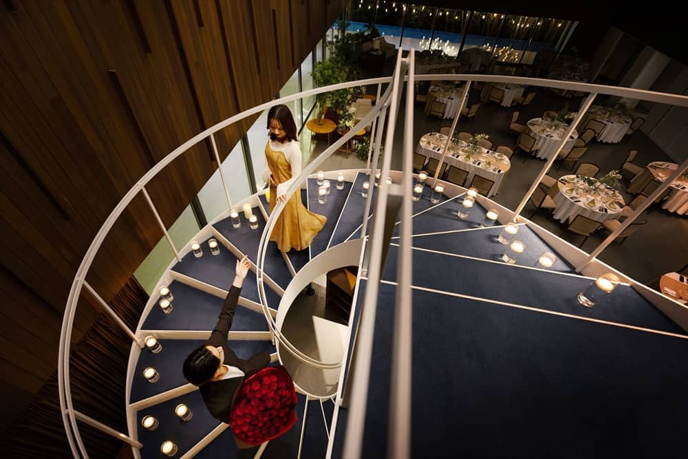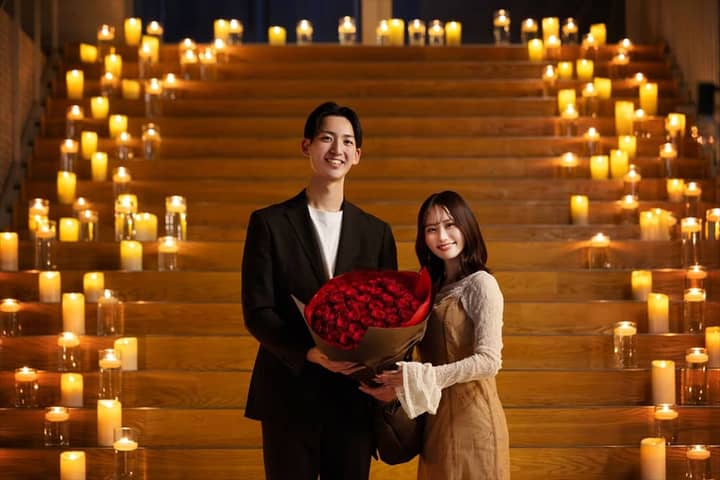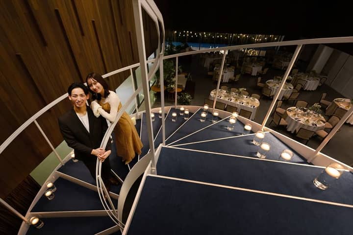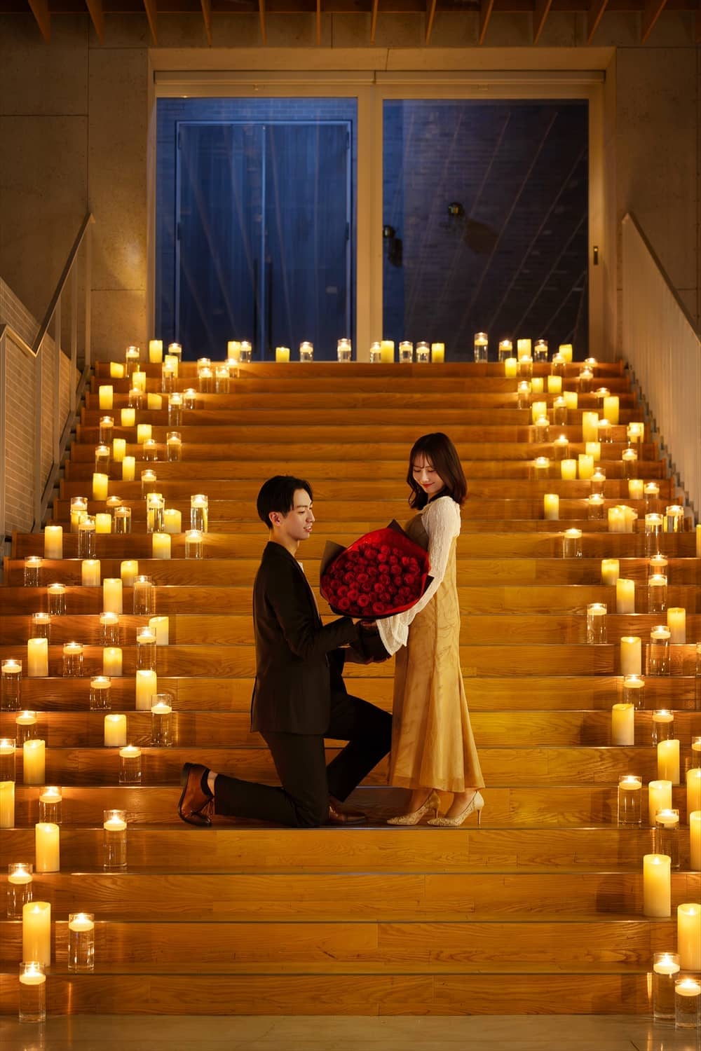 階段にキャンドルを並べて幻想的なプロポーズも叶う。一生の記念になるお写真をのこせます。