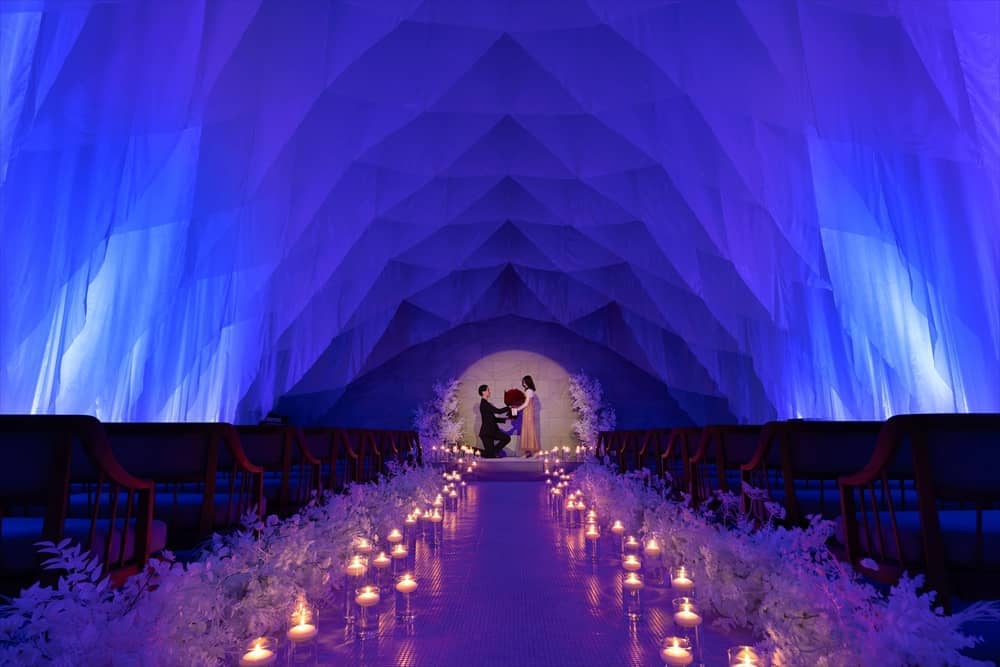 ブルー:ブランのチャペルはプロジェクションマッピングを導入しています。星空をはじめ、幻想的な光の演出が可能です♪